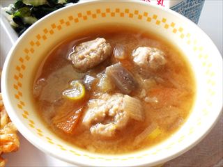 野菜が苦手な人にも食べやすいように、白ねぎ、にんじん、たけのこなどふるさとのお野菜を細かく刻んでたっぷり入れてあります。冬の野菜をたっぷり食べて体を温めようという優しさがステキです。