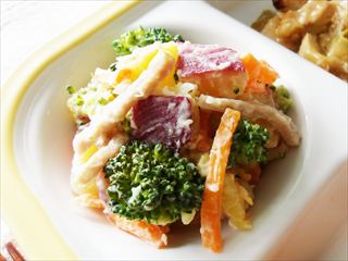 さつまいも、にんじん、ブロッコリー、らっきょうと特産品オンパレードで鳥取県らしさ全開の一品です。