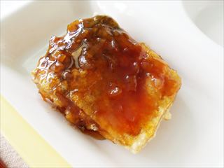 よく噛むと頭の働きがよくなるので、栄養豊富な「さば」を竜田揚げにしてかみ応えが出るように工夫してくれました。
