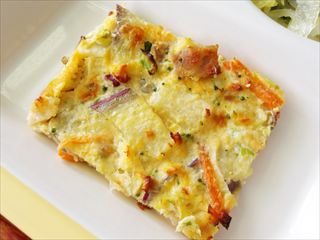ふるさとの恵みを県産牛乳入りの卵の生地で焼き固めた優しい味わいのキッシュを考えてくれました。