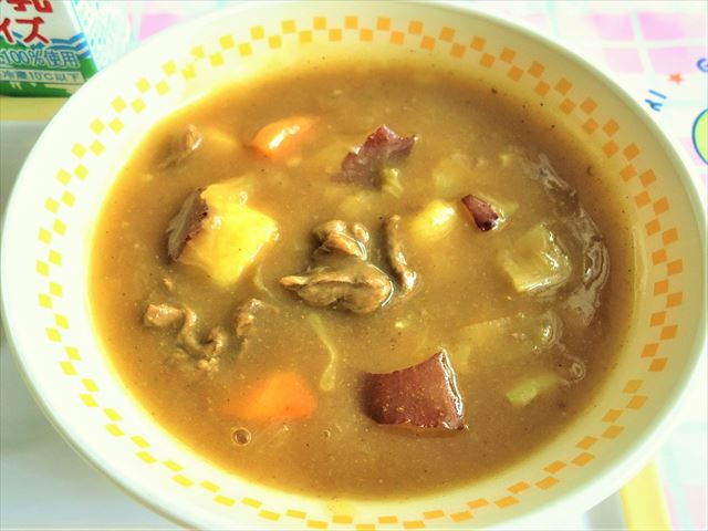 今年度応募数が多かったシチューです。ふるさとの食べ物がたっぷりつまっておいしさも栄養も満点!!ふるさとの白ねぎ、にんじん、ブロッコリーなど地産地消に取り組もうという思いが込められています。温かなシチューを食べて体はぽかぽか、さつまいもの甘さで心はほっこりしました。