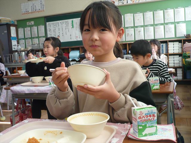 次に、「チャルモッケスムニダ」という子どもたちの元気な声で給食がはじまり、給食を食べながら申さんによる国際理解講座が行われました。韓国語で「いただきます」は「チャルモッケスムニダ」といいます。今日のために、事前に韓国語をいくつか覚えていた子どもたちです。