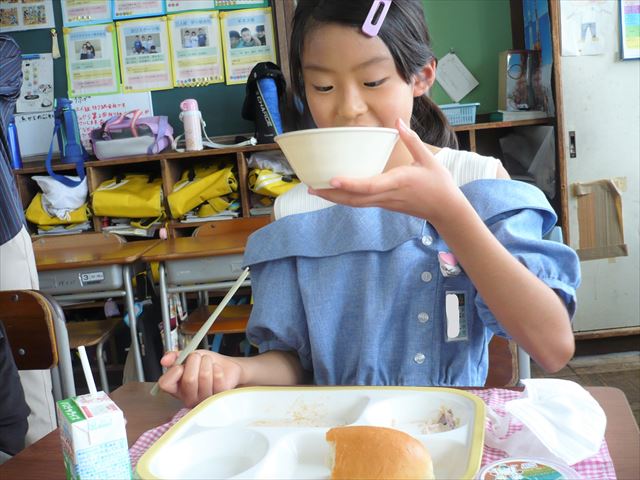 また、車尾小学校では、学校栄養主任が「今日の献立は米子市とオーストラリアがミックスされて2つの国のおいしいものがたくさん詰まった給食です」と本日の給食の特徴を説明しました。子どもたちは、改めてオーストラリアの食文化に興味を持ち給食を味わって食べました。