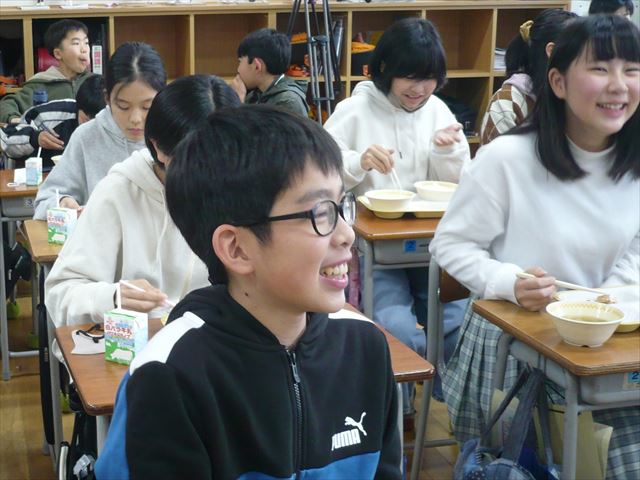 講座後は、山形さんも一緒に、ふるさとの味がつまった給食を食べました。