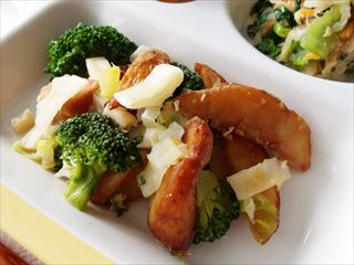 じゃがいも料理の定番「ジャーマンポテト」に、ふるさと食材の白ねぎやブロッコリーを加えることで、より華やかな料理を考えてくれました。香りの良いハーブを使って食欲がわき、野菜もモリモリ食べられそうです。