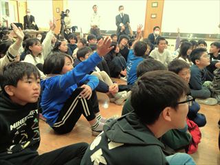 この日、ドンさん が車尾小学校を訪問し、5年生に国際理解講座を行い、中国と日本の食文化の違いや友好都市である保定市について紹介しました。中国に関するクイズも交えられ、子どもたちは楽しく中国文化を学びました。