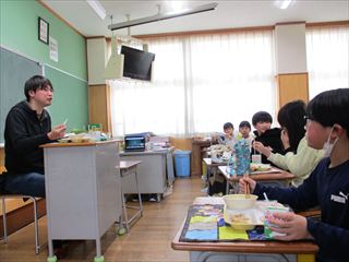 給食時間には、生産者さんを囲んでにぎやかな時間になりました😊