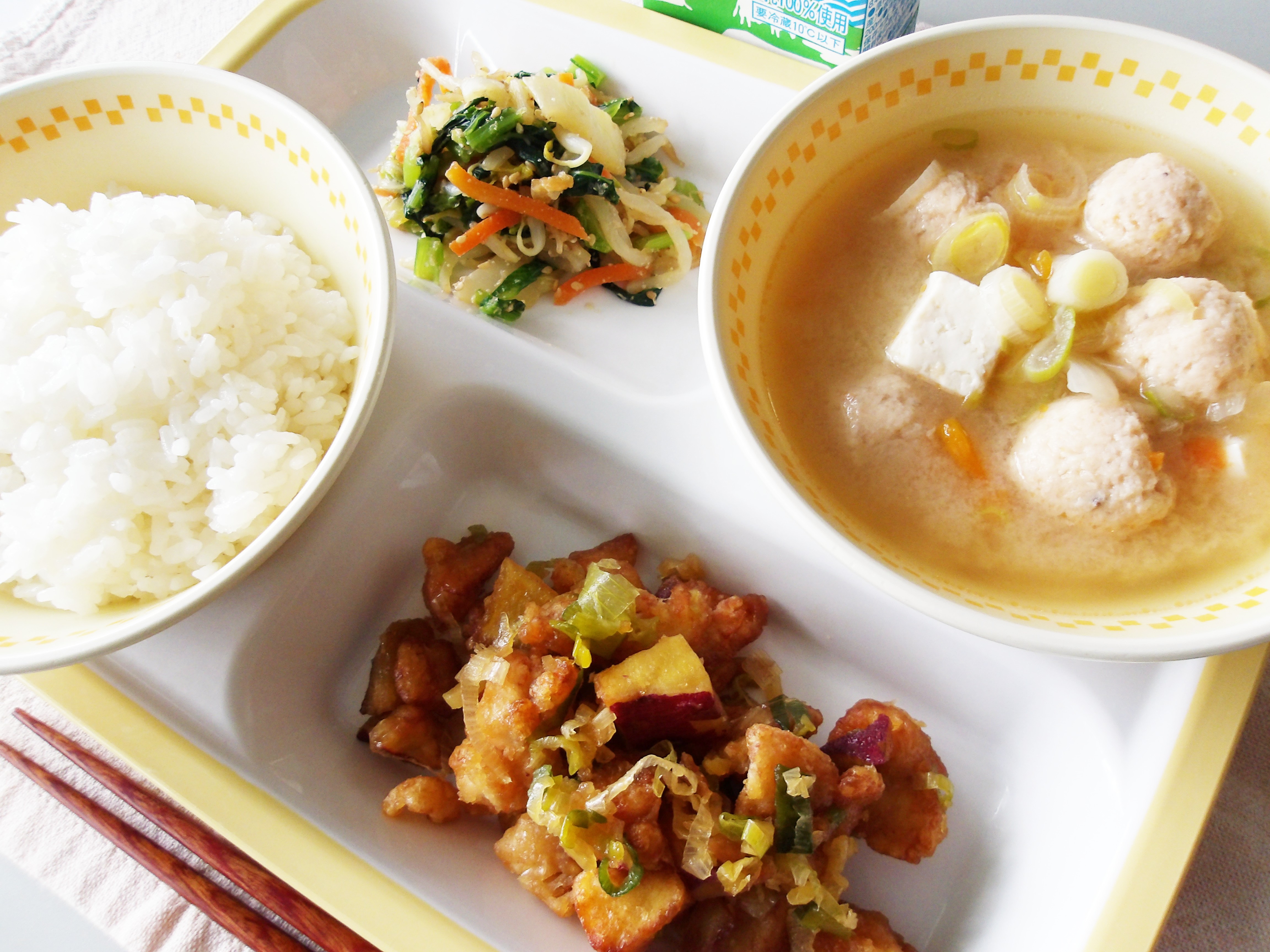 よく噛むと頭の働きがよくなるので、栄養豊富な「さば」を竜田揚げにしてかみ応えが出るように工夫してくれました。