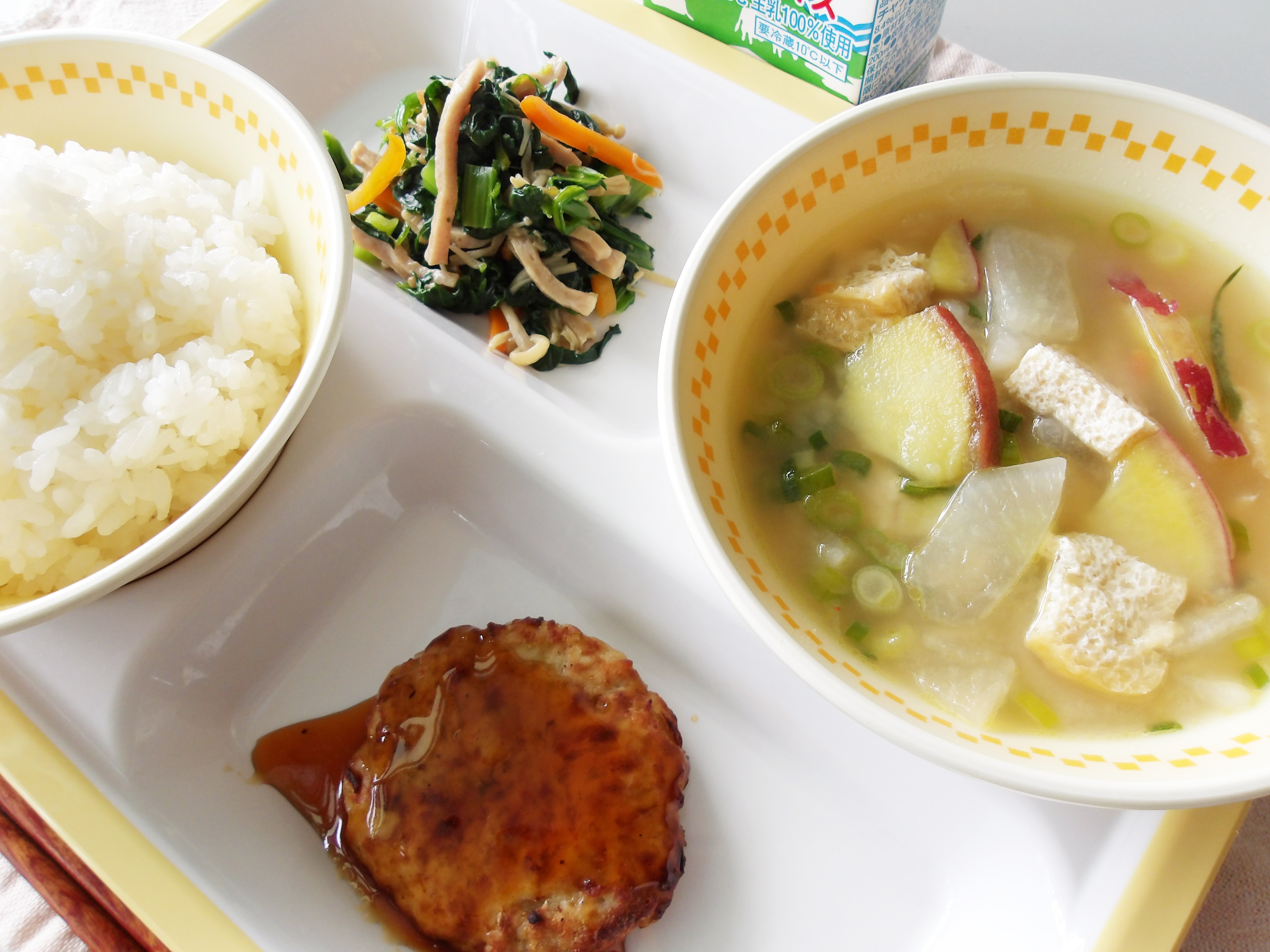 免疫力を高める白ねぎや、米子のにんじん、こんにゃく、鶏肉などをたっぷり使った味噌汁です。