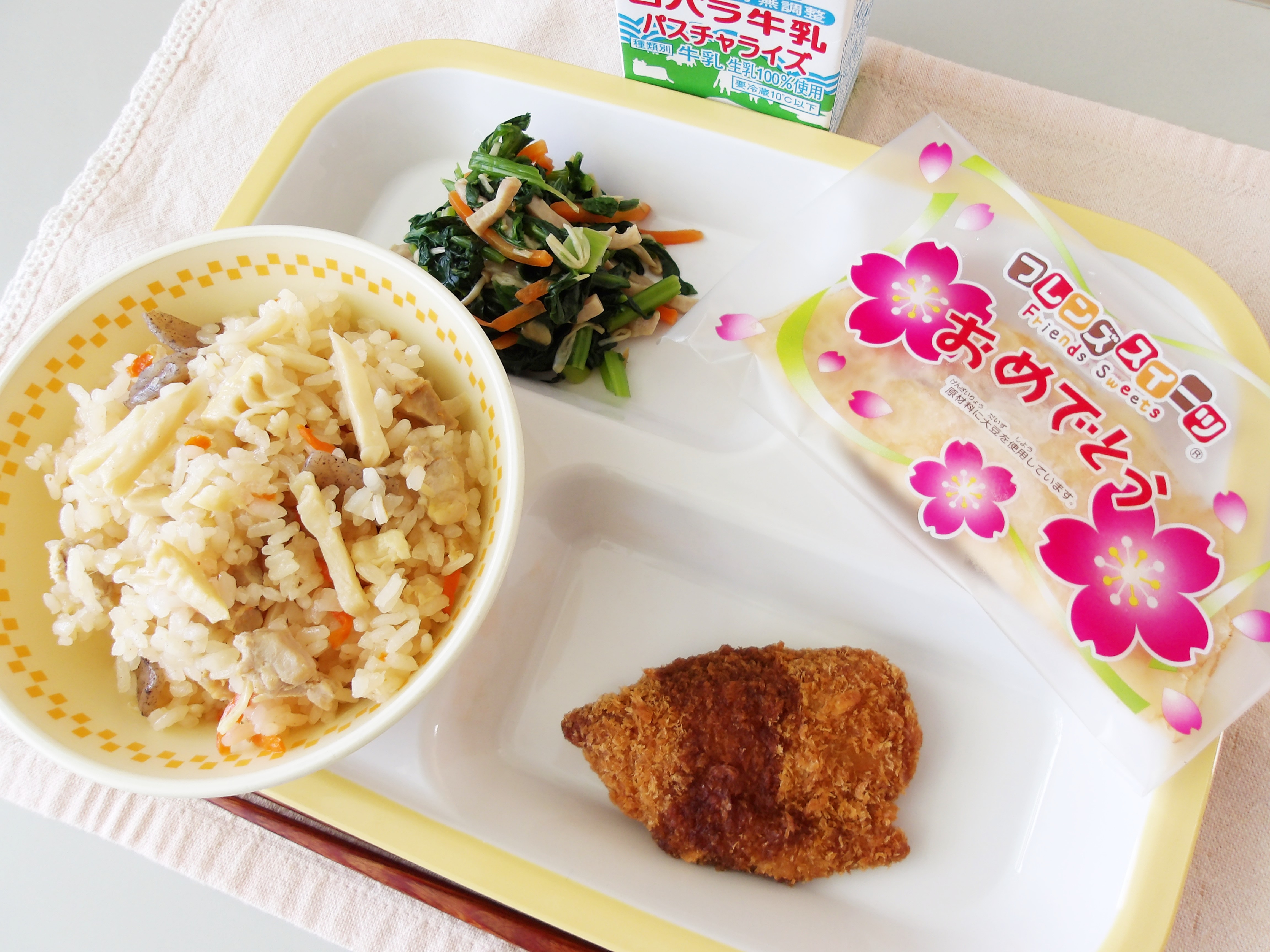 今が旬の「たけのこ」を使った「たけのこごはん」には、ぐんぐんと大きくなるたけのこのように、みなさんにすくすくと成長して欲しいという願いが込められています。